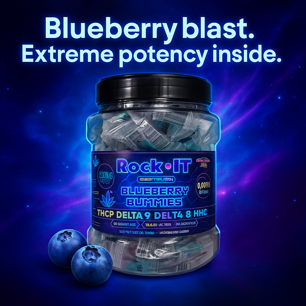 Double the cannabinoids. Full-body impact. Rock It Duo Pack Gummies deliver 1,200mg of blended THC-P, Delta-9, Delta-8, and HHC in each 2-piece pack — perfect for experienced users looking for intense, lasting effects.